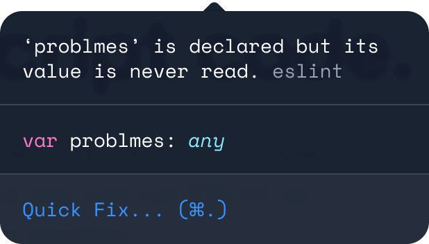 了解更多关于使用 ESLint 发现问题的信息ESLint 发现的许多问题都可以自动修复。ESLint 自动修复是语法敏感的,所以你不会遇到由传统的查找和替换算法引入的错误。